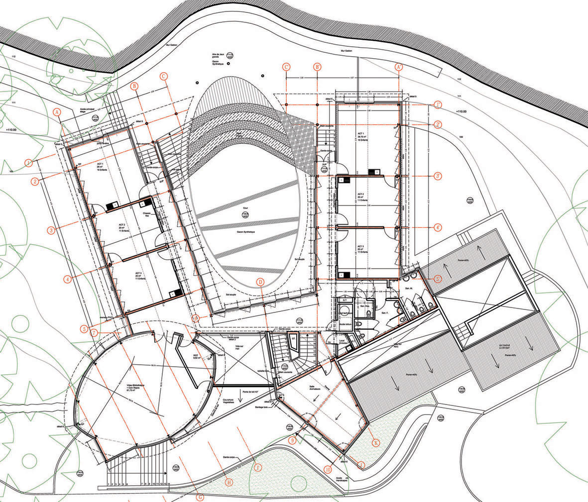 surface: 900 m², (18 salles d’activités, une bibliothèque),